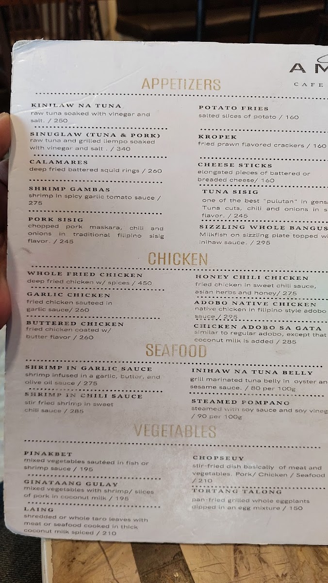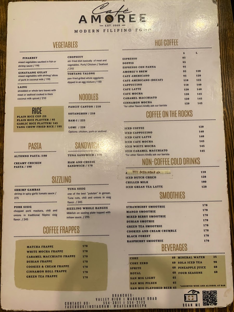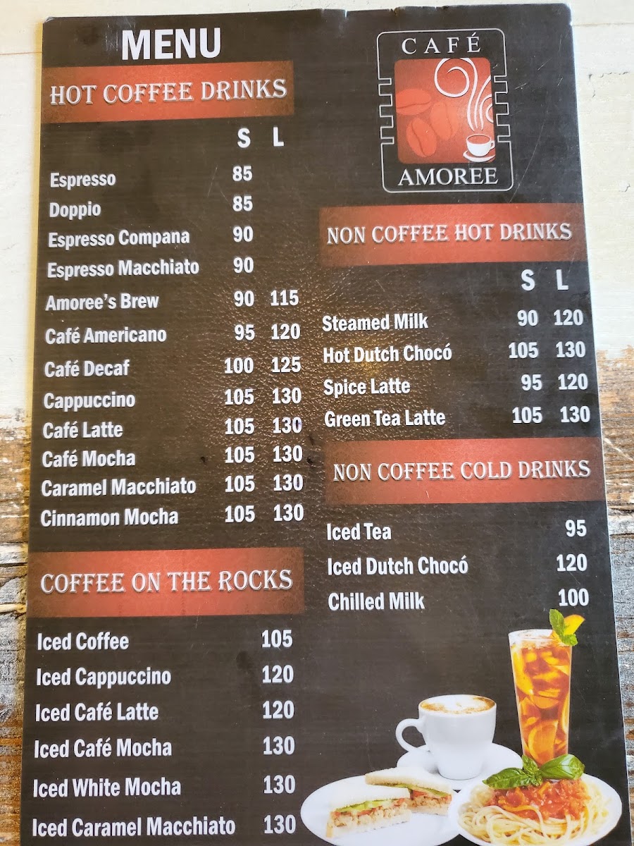 This menu suits customers looking for a range of beverages alongside Filipino and Italian food selections, whether for a midday snack, casual meal, or coffee break. The variety in food and drinks allows for quick ordering as well as leisurely dining.